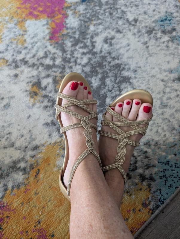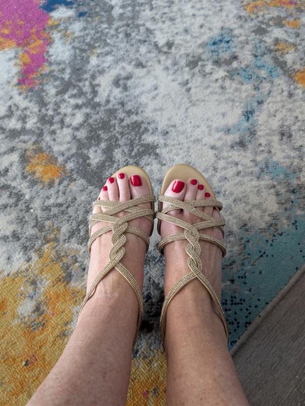 I really like these sandals. Perfect for dressing up an outfit when I can’t wear heels. I love that they are dressy but comfortable. The color is perfect for several dresses and pants suits that I own. I can especially use these for formal nights when I travel as I often end up having long walks during travel.