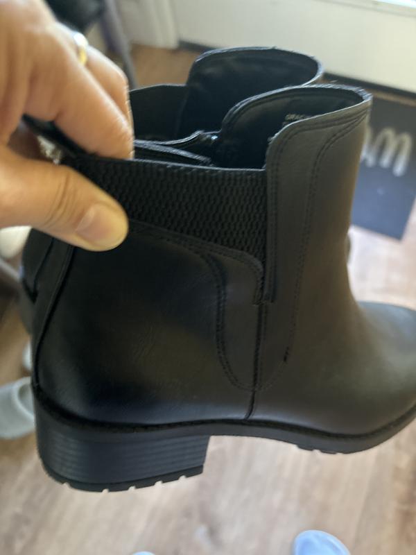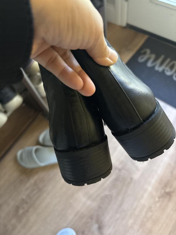 So disappointed. Handsome, sturdy bootie, with a good lug sole that would deter slipping. Just the style I was looking for as my winter casual go-to. Correct size. And the Black Friday sale price made them irresistable. But the vegan "leather" is so hard and unforgiving it cut into my ankles as I walked. And the nice wide toebox bumped right up against my toes. Too short. Decided to walk around my apartment for a day to see if they would ease in a bit. Eore medium weight socks. But at the end of the day my feet were battered. Decided I would add them to the Shelter box I am putting together because the price was low and they seem well made for someone with less tender feet and a shorter foot. Will tuck in a note indicating shoe size is more likely a halfsize smaller.