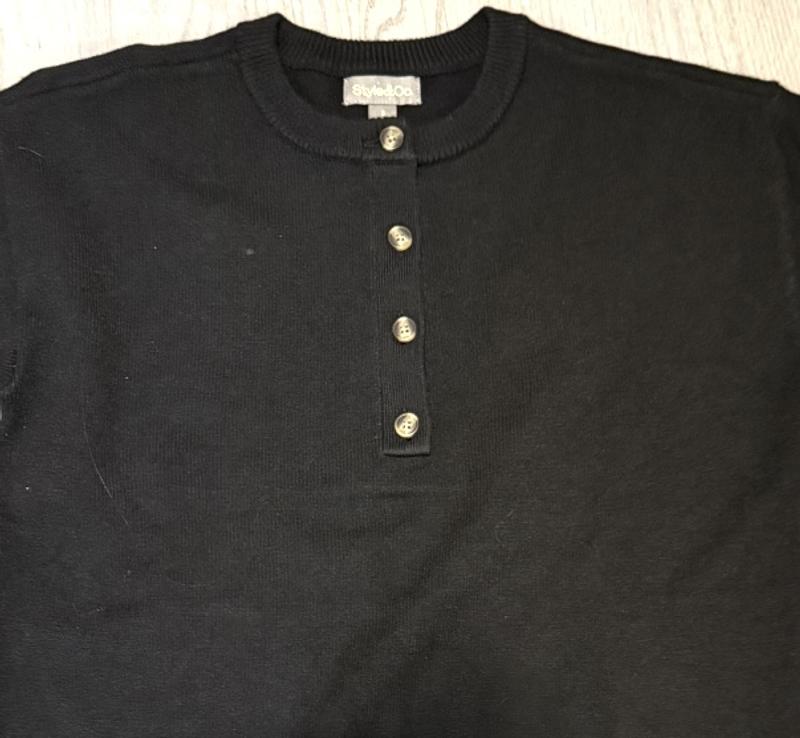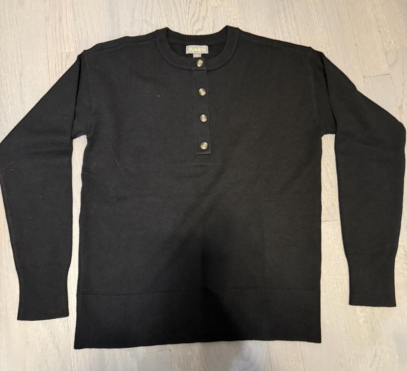 This sweater feels super soft and comfortable. It fits true to size and has a nice, clean look that works well both for casual wear and for work. It goes with everything — jeans, dress pants, or even layered under a jacket. Highly recommend!. Black color