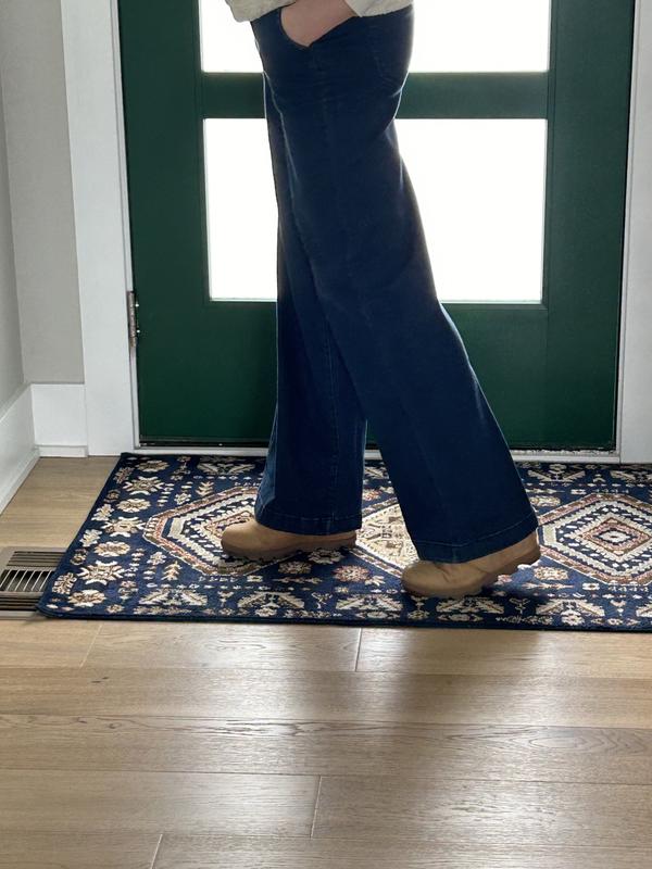 I’m 5’2. And it’s great with heels for work or sneakers with a tshirt. High waisted to hide the belly