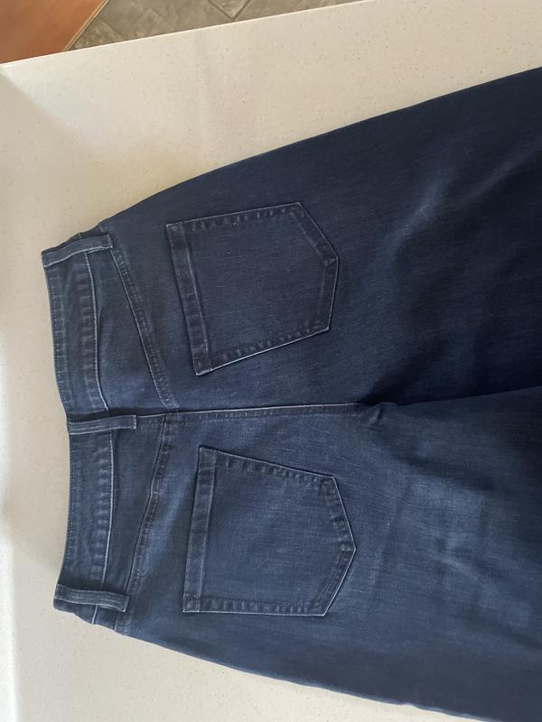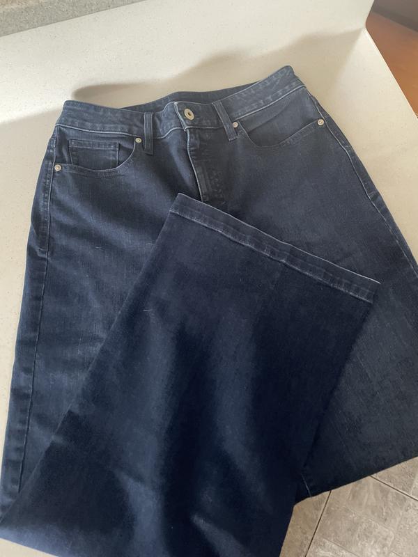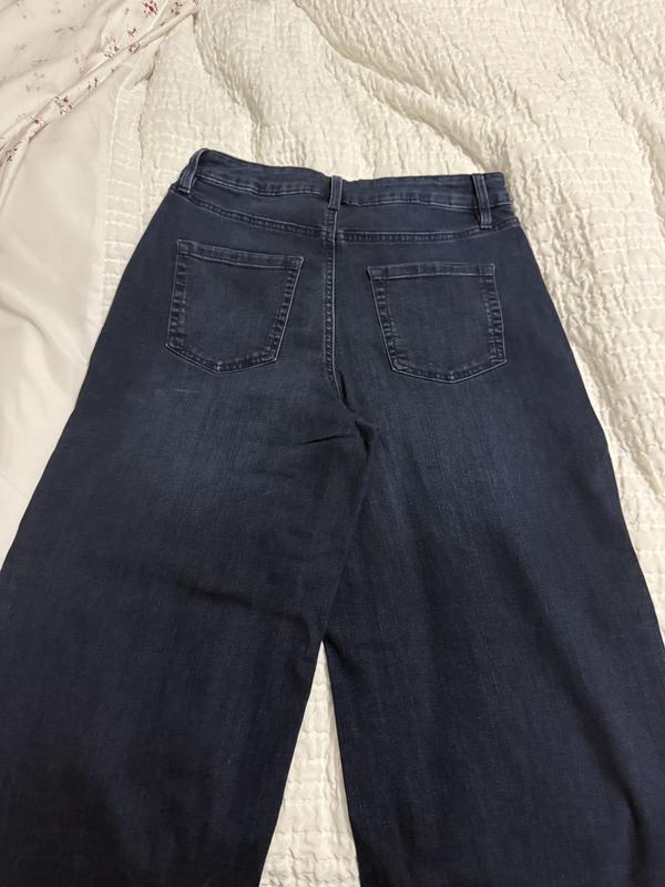 I did not think I would like the wide-leg jeans on me, but I love them. The fact that they are high-rise as well is amazing. They fit so well, and I feel really good wearing them. It really pays to shop in the store and try on clothes.