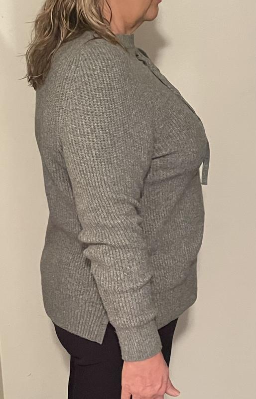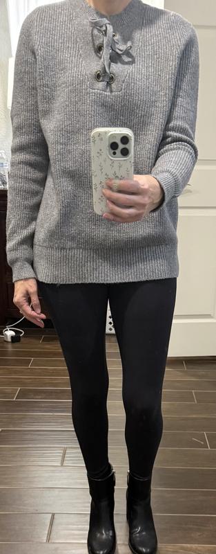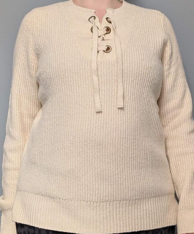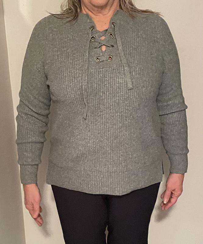 What I like most about this sweater is how soft and cozy the fabric feels against my skin. Surprisingly, it is also lightweight while still being warm enough for cooler days. The lace-up detail is so stylish. I also like the fit; it’s not too tight or too loose. I’ve received several compliments on it, and I love that it pairs well with everything from jeans to leggings. I only wish it hadn’t started pilling a bit. Overall, I highly recommend this sweater as it looks stylish and is so comfortable to wear.
