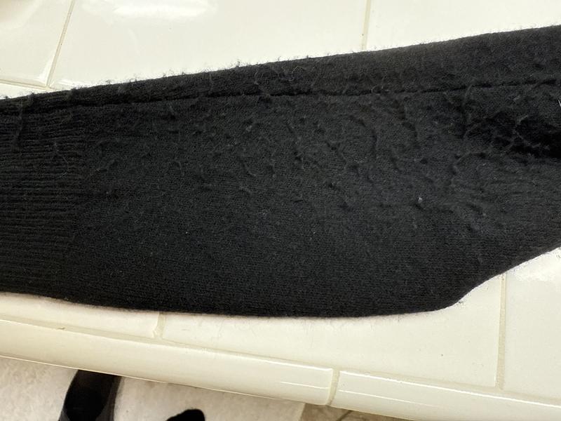 I was excited to find this sweater at Macy’s a few days after Christmas. I wore it one time and it’s piling all over! I cannot believe how poorly crafted this sweater is. I’ve already cut off the tags and thrown them away. I wish I could get my money back on the sweater. I do not recommend it at all! It seems like any sort of friction creates piling on the sweater.