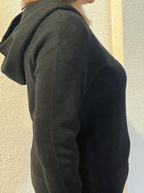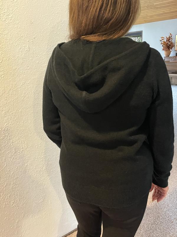 I wore this sweater the next day! It is soft, not oversized, but just right. I will wear it often! The fit is perfect! Not too long, not too short. Perfect for fall weather, and it has a hood. The hood lays nicely under a jacket or you can pull it out! I would definitely recommend it to my friends. It would flatter any figure type, I think.