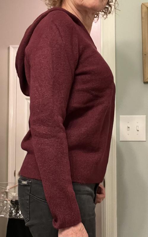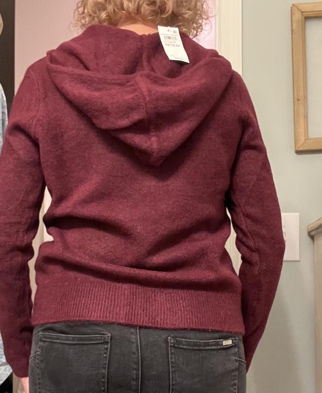 Wow! I did not realize how soft and comfortable this sweater-hoodie would be! And it fits perfectly. I wear mediums (9/10) and ordered the Med., so true to size. Love the deep wine color too. Can’t wait to wear this to the ski lodge later this week,