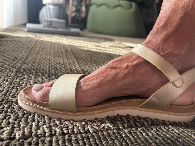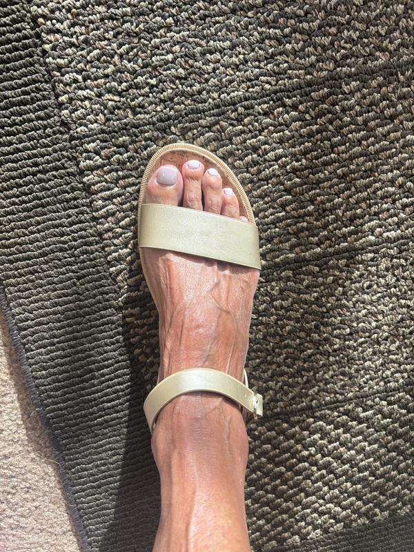 Love the color (gold) and the style just not happy with the fact that it’s a buckle rather than a Velcro strap.. hard getting in and out of also they are very flat so be mindful of that.