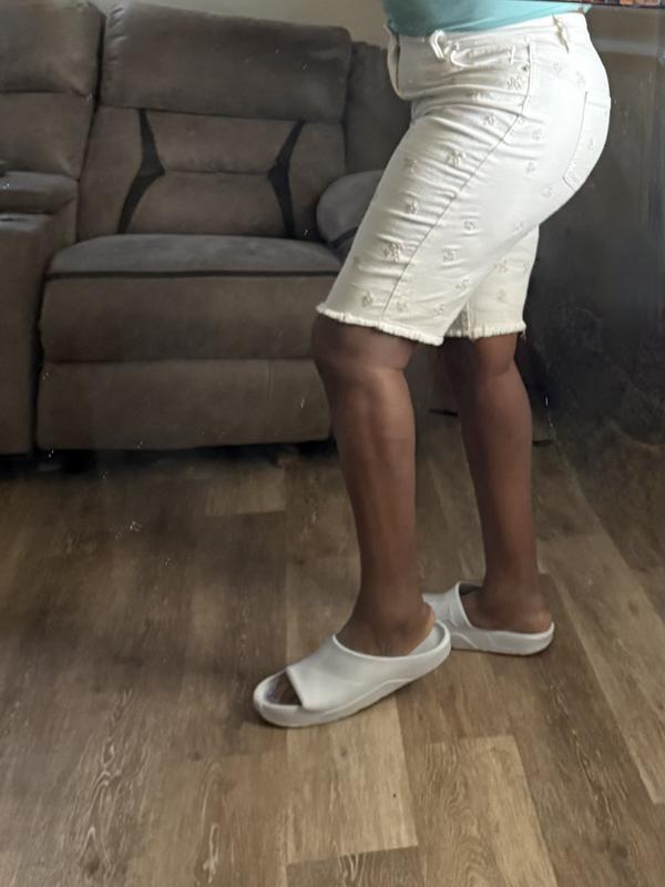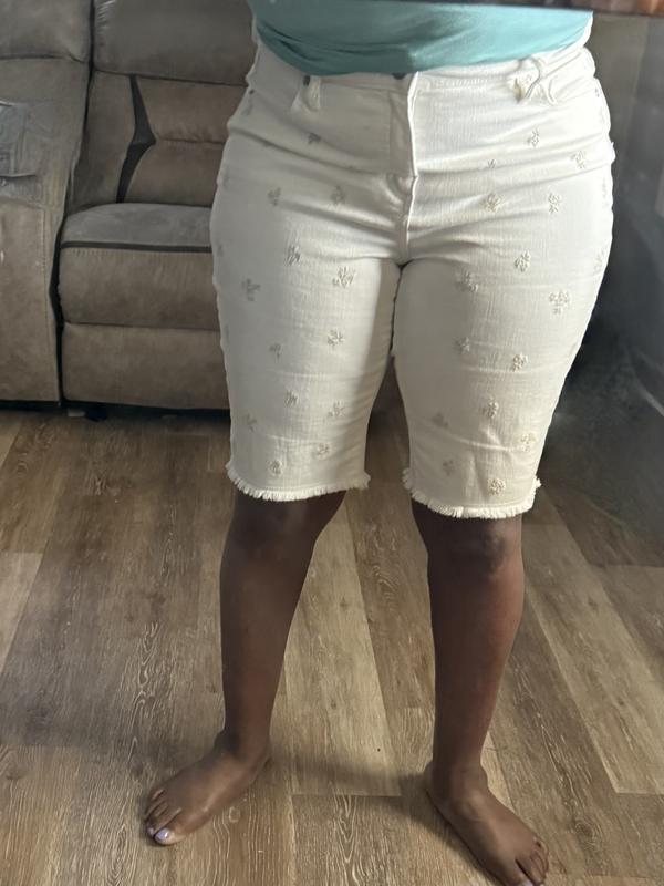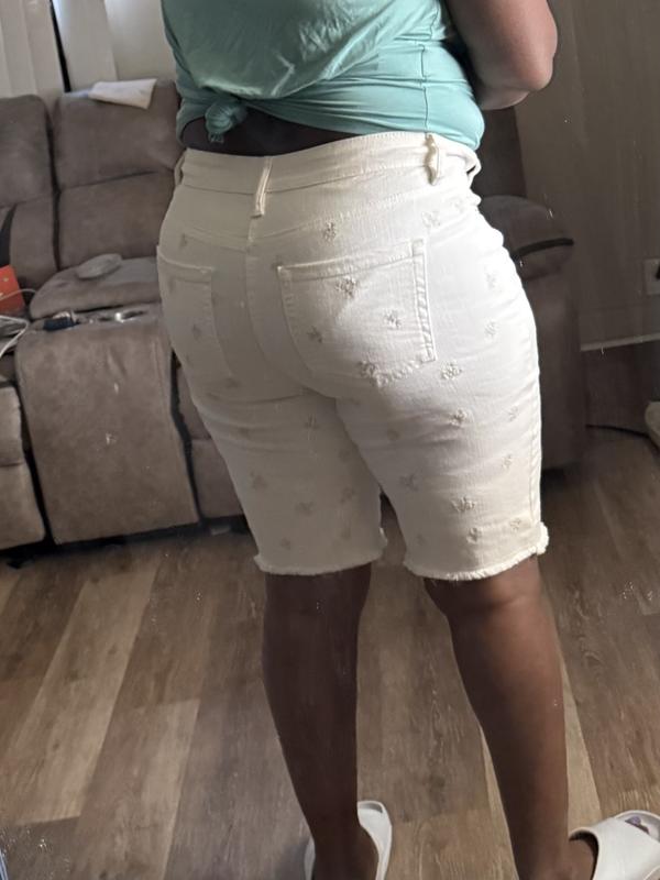Great length and fit. These raw edge Bermuda shorts are flattering and the length is perfect, not too short but not as long as capri