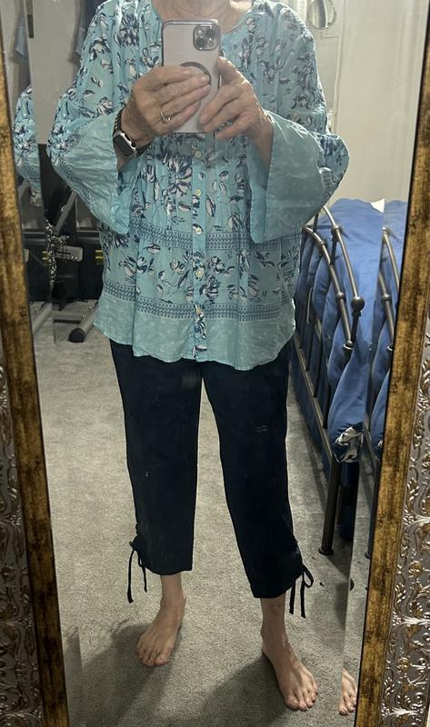 Very cute cropped pants. Nice fabric and style. They tend to be more baggy in the hips, which can be great for some body types, but not mine. Had to return. Was disappointed because really liked the style.