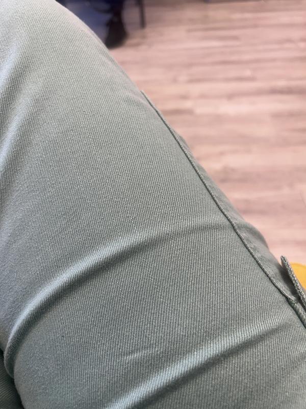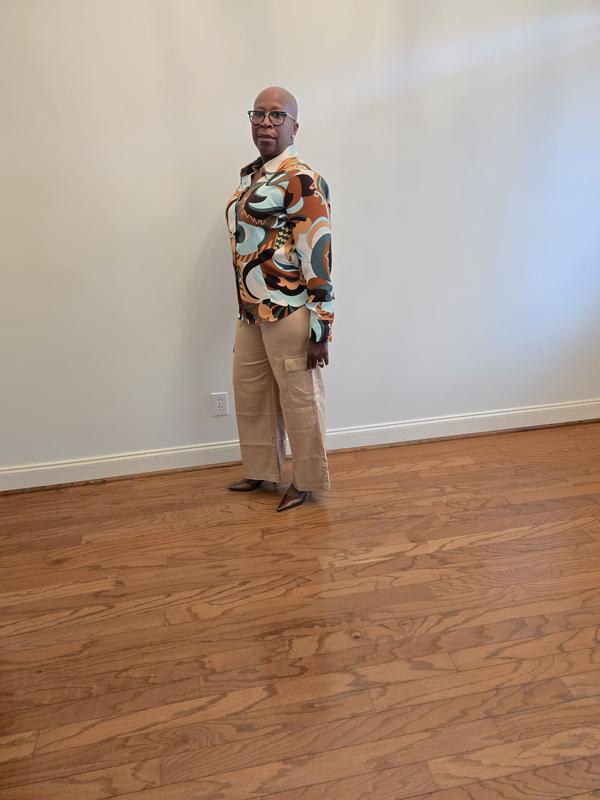 If you didn't buy these pants because the model looks dorky in the photo, you missed out. Just wear a longer top! I love everything about the pants. The fit, the color, the pockets and especially ... no camel toe. If you're tall (say over 5'7"), these won't be the pants for you. I'm 5'6" and think these cargo pants could easily be a half inch longer. I've washed them once (inside out, line dry) and they didn't shrink. I wish they came in more colors, like dark gray, indigo and sky blue.
