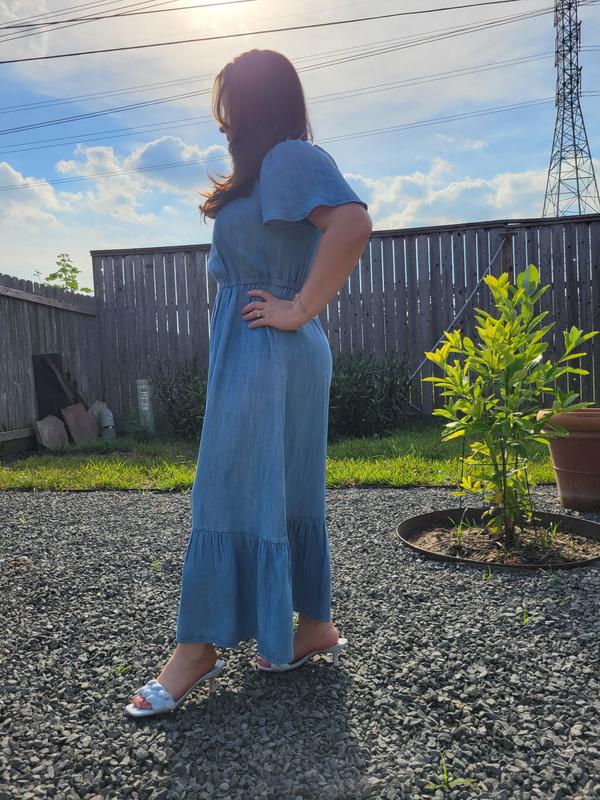 Style & Co works wonders in your wardrobe with this chambray midi dress designed with a neckline that can be worn two ways.