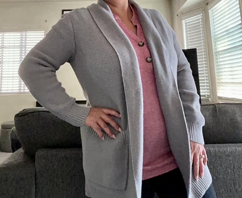 This is a basic cardigan in the best way. It is great to throw on for any casual occasion whether it’s to run an errand to the grocery store, wear to the gym, etc. The cardigan is also comfy, cozy to wrap around yourself at home and relax in. I am 5’2” and size XS fits perfectly even the arm length.