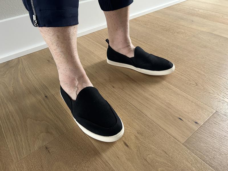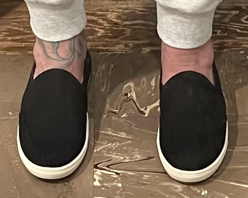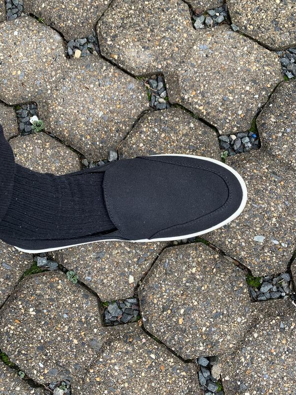 These slip-ons are a great summer time shoe. The entire upper is a soft canvas. It is not stiffly structured. I am very happy with my purchase. True to size.