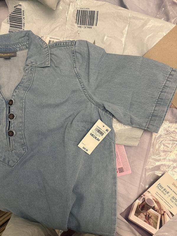 Women's Popover 3/4 Sleeve Denim Dress, Exclusively at Macy's
