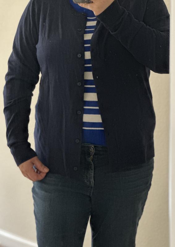 Trying to get away from wearing t-shirts everyday. I saw this and loved it. The only thing was the neckline was to wide and low. Smaller size too small. That is why I gave only 4 stars.