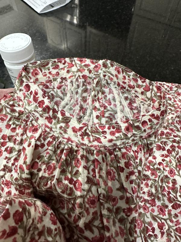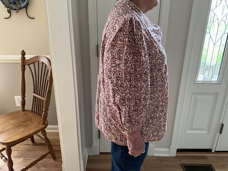 This top seems a bit vintage with its delicate calico print and shape. That said, it is quite boxy and some may wish to size down for a more fitted wear. I anticipate using this for a period costume rather than everyday wear. While this wasn't quite the one for me there is a plus, it launders well!