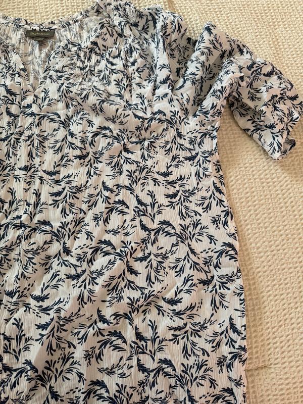 It is a very versatile blouse, the fabric is very soft and is a little transparent, I think that for the summer it is perfect to wear, the print is small and the sleeves are loose. It's a loose blouse that doesn't squeeze the waist, ideal to wear with leggings.