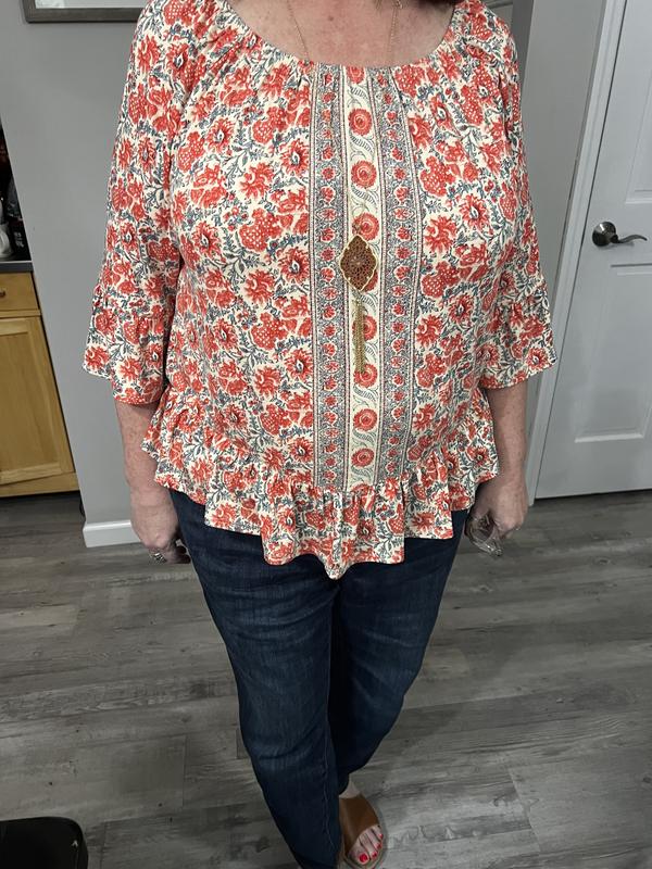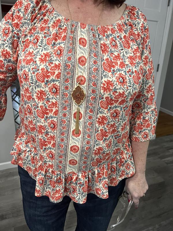 Wore this top within a few days after receiving it. Totally loved the fit and feel of the fabric and very comfortable. Wore with jeans and received several compliments about the color (ordered the black) and how cute it was.