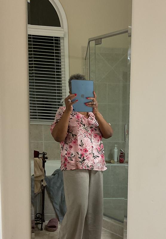 The color pallet is absolutely beautiful. It screams SPRING. The fabric is flowing and soft. But I do find the top it be a shorter than I normally prefer. The sleeves are short but they allow some flexibility; they can be elbow length or pushed up to be a bit shorter.