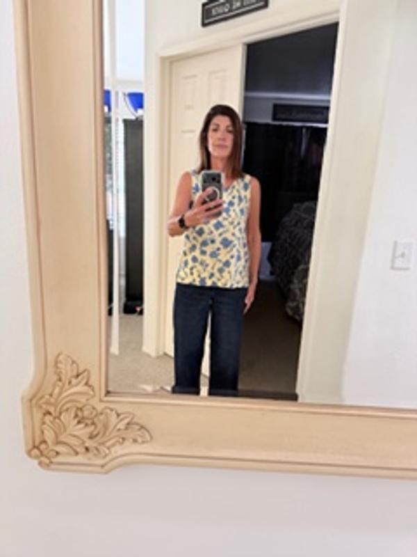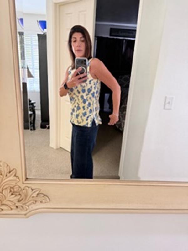 Fun top for spring and summer, can be worn with jeans or a skirt. Love the side slit, and that the arm holes are not to big. The length is perfect for someone like me who is 5 feet 4 inches. Soft fabric and nice colors.