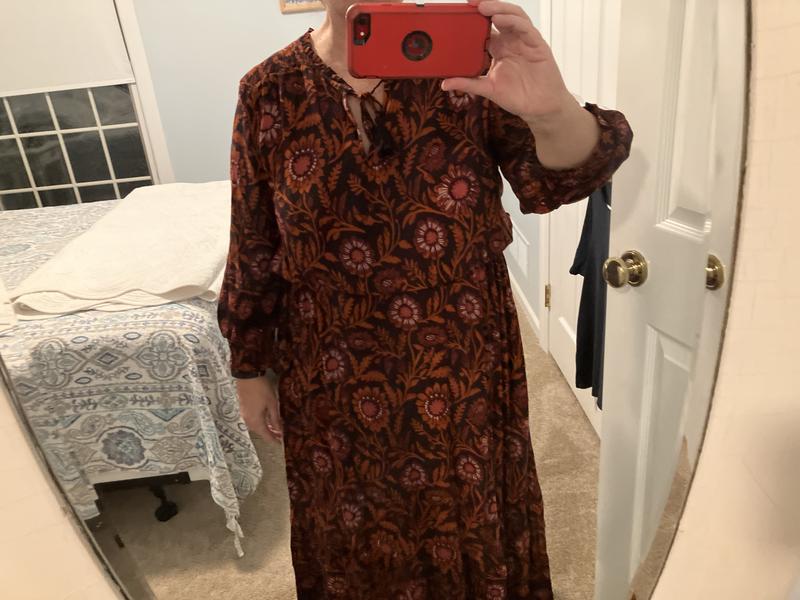 I absolutely love this maxi dress. It fits perfectly and the colors are vibrant. I got the Border wine color. I wanted a dress that I could wear to church that wasn’t too revealing. Very comfortable. Well made. 5’ 4” 115 XS