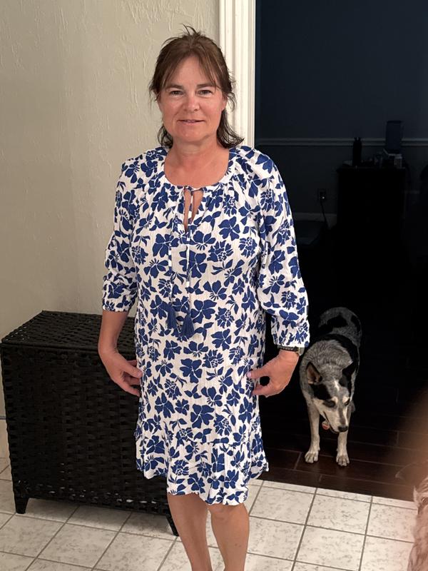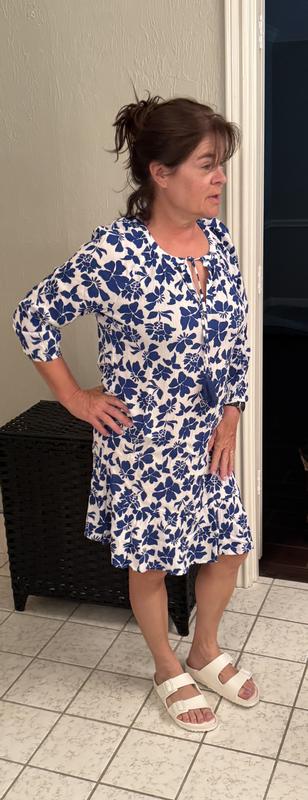 Women's Printed Split-Neck 3/4 Sleeve Shift Dress, Exclusively at Macy's