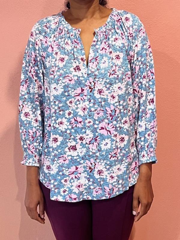 Am so happy this top is on last act sale price! I just ordered another color so now own all 3 of the offered colors. Have worn these tops in summer and current mild weather. Like the fit, doesn't cling, fabric lightweight, no issue with being sheer. I put in washing machine, hung to dry, needs light ironing but I tend to iron my clothes. Size and fit stable after several washings. I did sew a couple of stiches at v neck opening as advised by anther reviewer. Am retired so these tops are my colorful "go to wear" tops with jeans, casual pants and I receive compliments. Great bargain as bought all 3 tops now on sale!