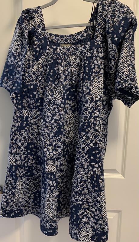 Beautiful color, pattern, style. Love the sleeves and tiered effect. The gauze fabric is not see-through which matters to me when at work. I subtracted one star because it seems to run large. I always wear a M petite but this M is larger than most. Will keep it as it was a sale item.