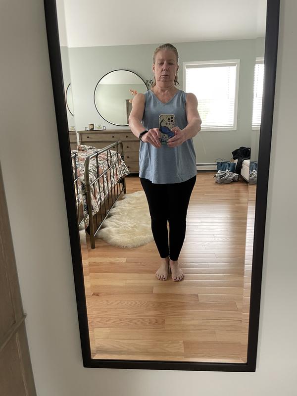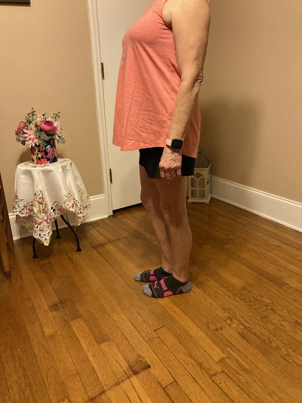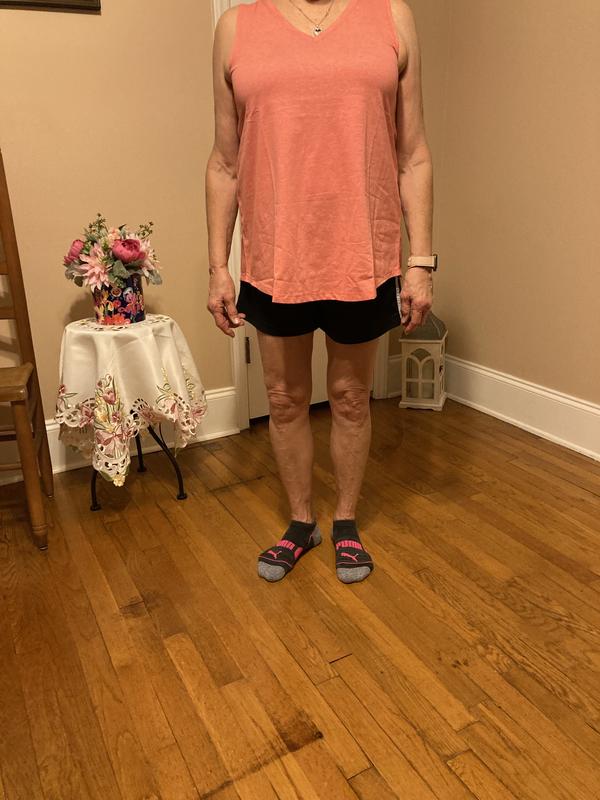 This top fits well and is a bit longer in the back, perfect with shorts or leggings!