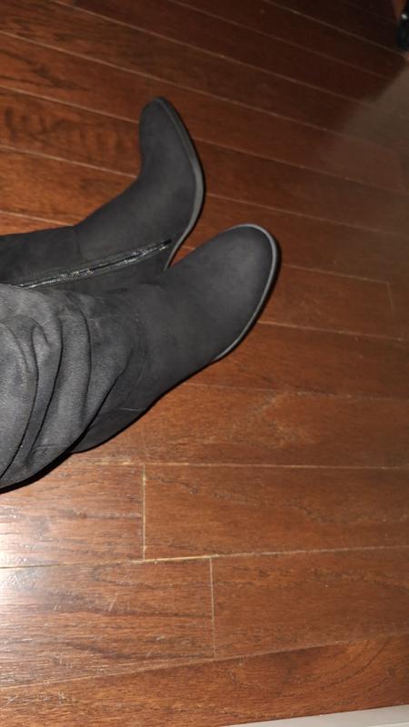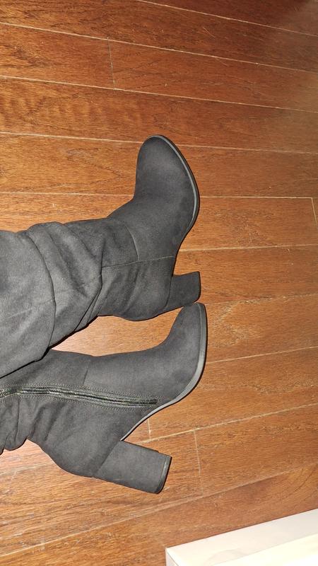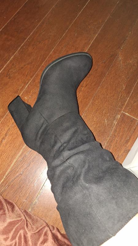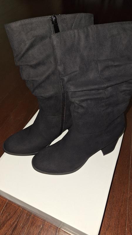 I received the STYLE & CO RENEEE SCRUNCH BT MC, black, sz7, free in exchange for my honest unbiased opinion. I really like these boots, they're easy to dress up or down. I'll wear them with jeans, tights or a dress. The chunk heel is the perfect height. The scrunch is just right. My only complaint is they are a bit tight. They seem to run small. I usually wear a size 6.5 and got these in a 7. They are a bit tight on my foot, I stuffed them with socks in hopes they'll loosen up a bit. Overall lovely boots.