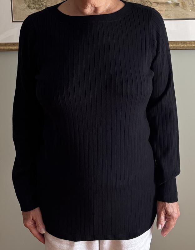 I love this tunic by Style & Co. The sweater material is soft and feels great on the skin. No need for a protective layer to protect your skin from itchy fabric. The sweater material is thin, but not cheap or flimsy. The ribbing is vertical and subtle. Between the boat neck and the direction of the ribbing, the sweater is flattering on all body shapes. This is a versatile piece that could be dressed up or dressed down. Depending on where you live, the Style & Co Women’s Ribbed Boat Neck Tunic Sweater could be worn all year long.