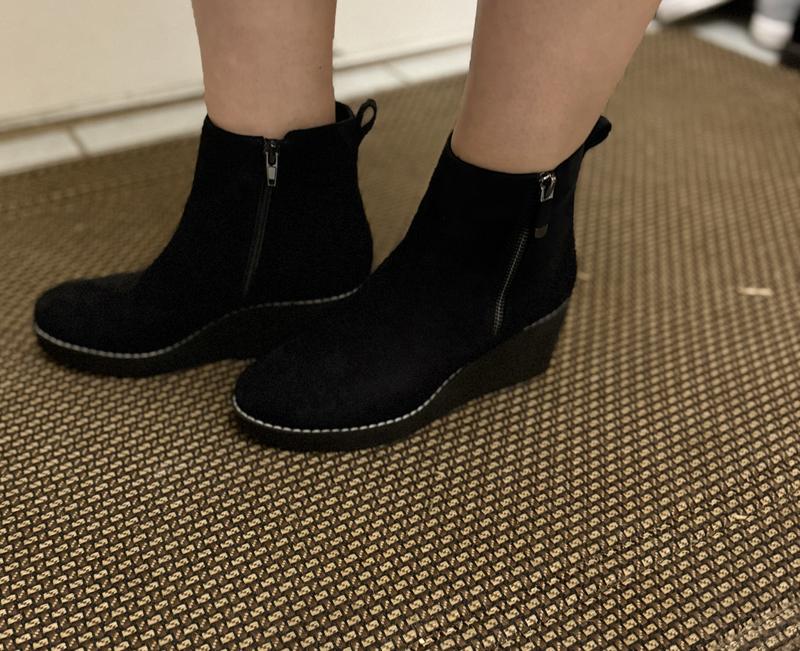 These boots are the perfect height for a middle age gal. While you won’t be able to wear all day you will be able to rock that style for a few hours. I would not recommend wearing during a rainy day unless you want spots on your boots. Overall I’ll give it a 3.5 .