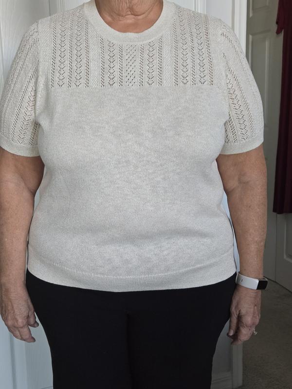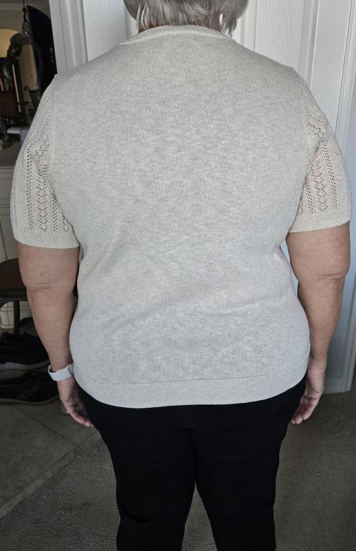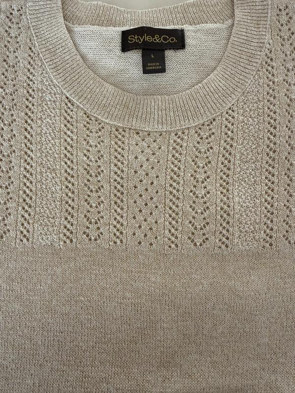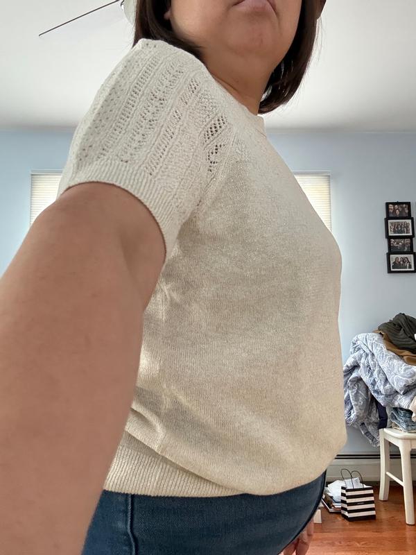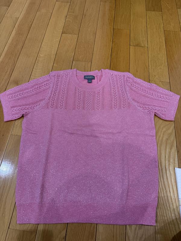 Style & CoWomen's Short-Sleeve Pointelle Lurex Sweater, Macy's Exclusive