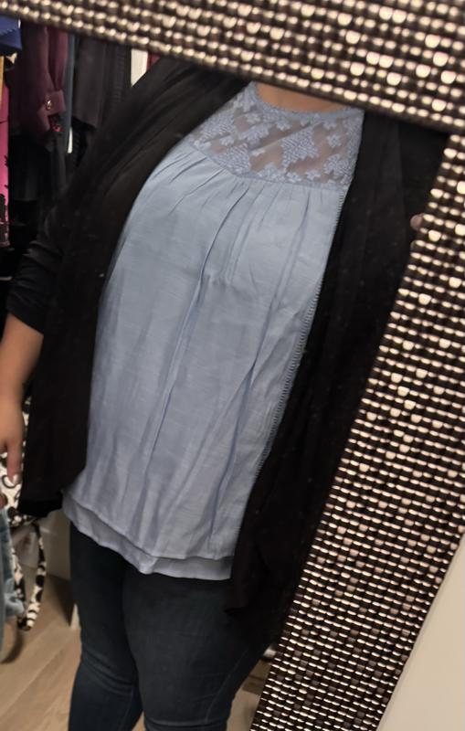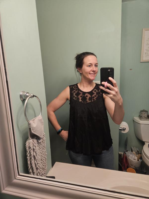 This top can be casual or dressy. I purchased in black. Love the lace details on neckline.