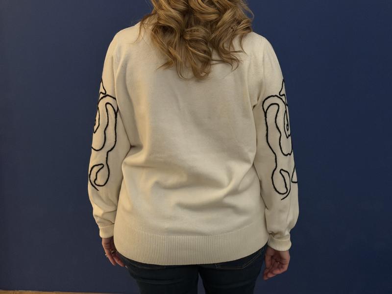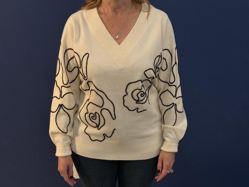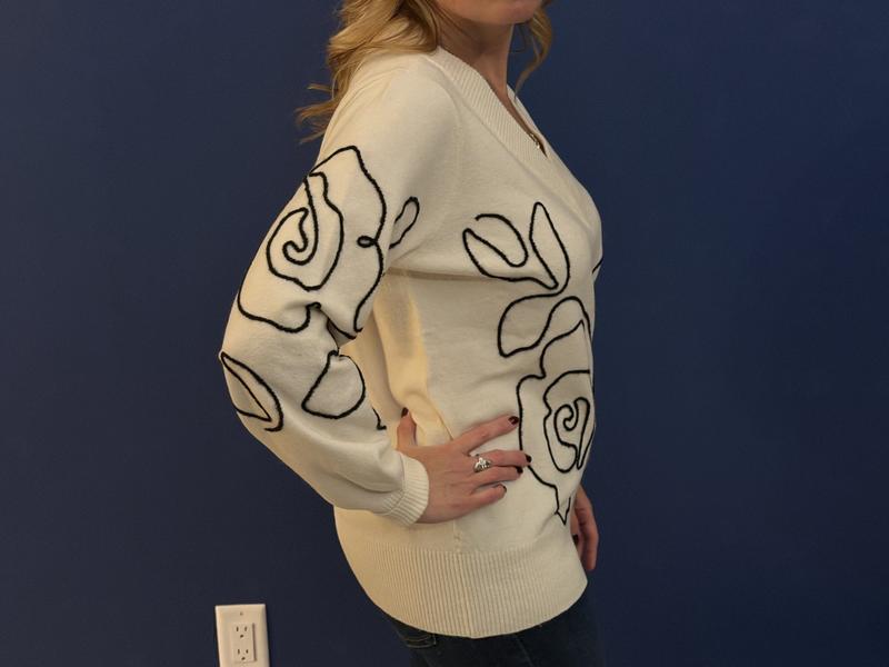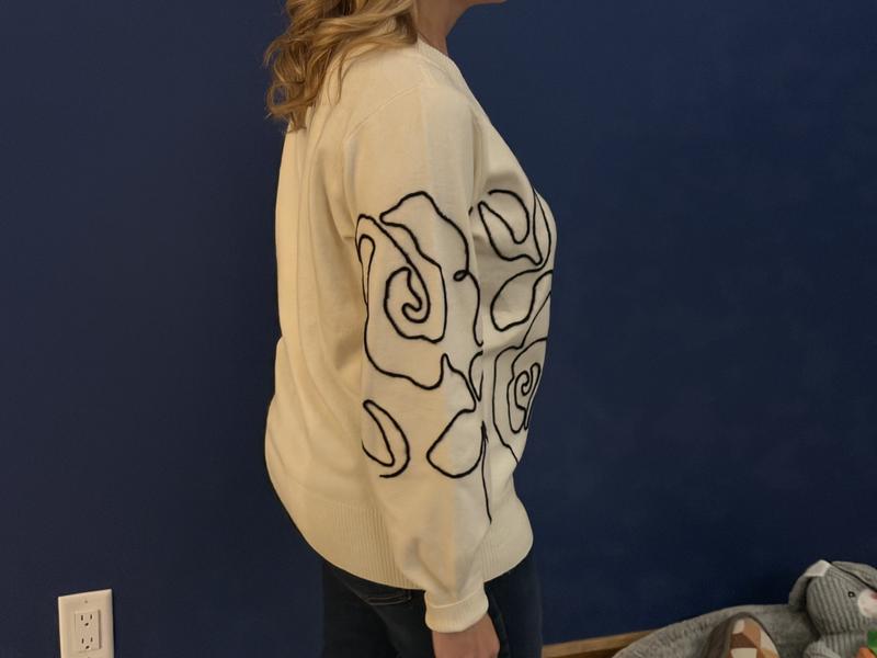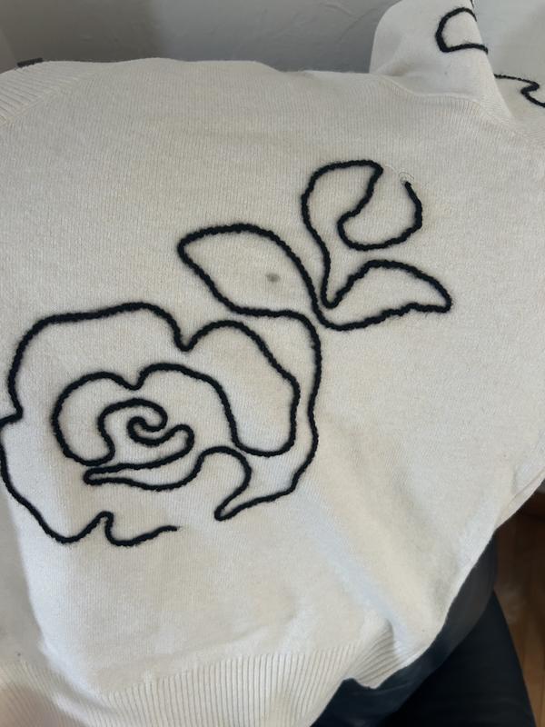I liked the V-neck and Soutache flower embroidery on the sweater. The sweater itself was not what I expected. It was not soft or cozy. The sweater wasn't anything special. May be cute for the holidays or limited use.