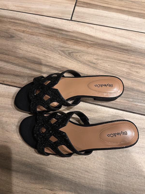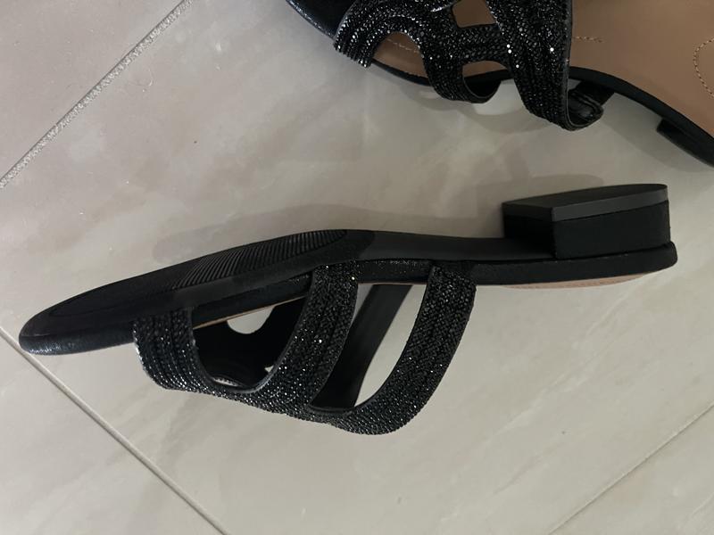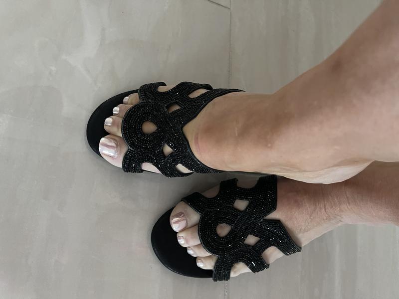 Beautiful sandal. They are so comfortable and easy to slip on. The embellishments give this sandal a classy, dressy vibe. The material/leather underneath the strap is soft so it’s comfortable on your feet. I normally wear a size 8 and the fit is perfect.