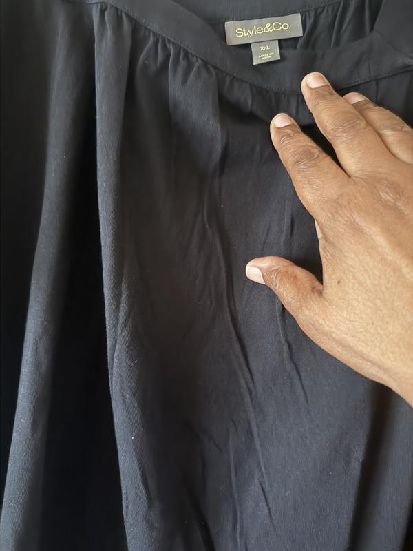This blouse is perfect for summer. Material is very soft. It fits perfectly. Style & Co sizing is very consistent. Ordered black which will be great with white pants or shorts. Going on 2 cruises and it will be perfect. Won’t take up any room in my suitcase.