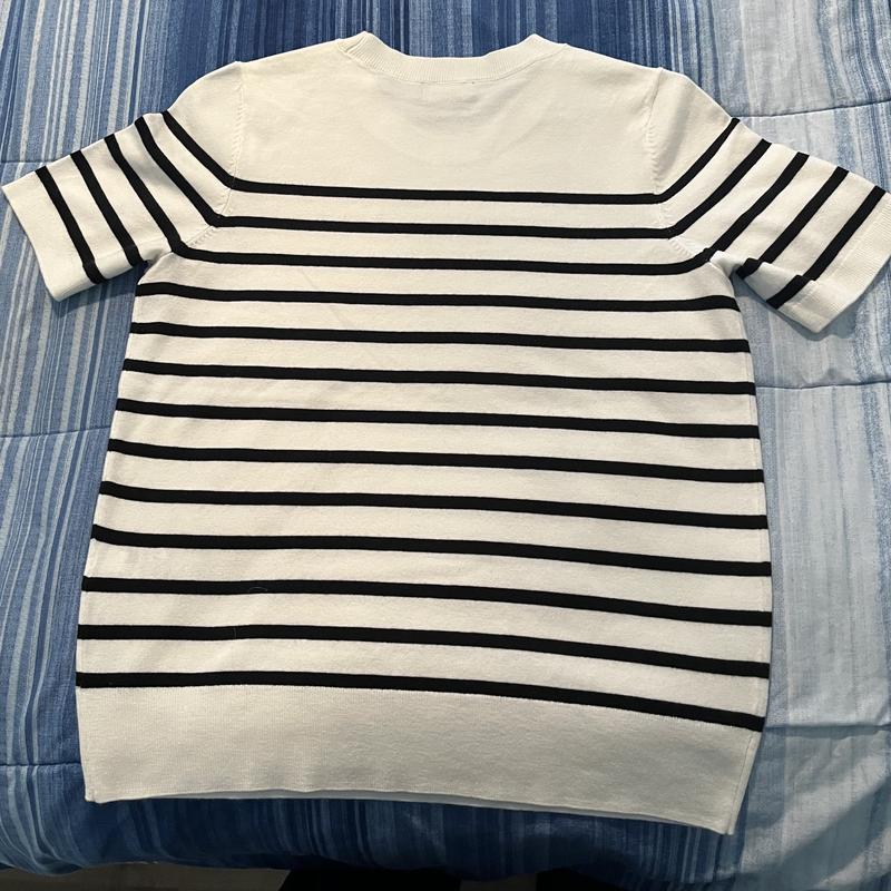 Classic tee in stripes. Can be dressed up or down. Very good quality. True to size. Have not washed, so how it holds up in the wash is yet to be determined. Navy and white perfect for late winter and early spring.