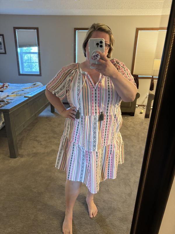Women's Stripe Split-Neck Tiered Dress, Created for Macy's