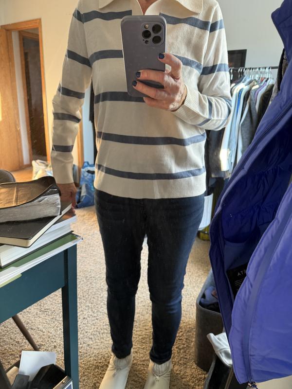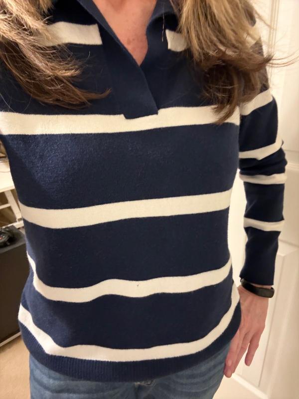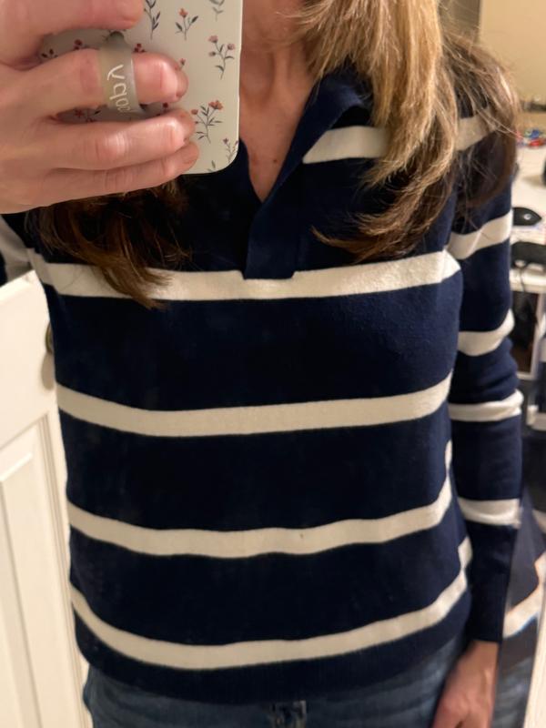 I love how cozy and stylish this sweater feels, and the Johnny collar gives it a polished look that works for both casual and dressier outfits. The fabric is soft but not too heavy, making it perfect for layering on cooler days. It fits true to size and washes well, which makes it an easy go-to in my closet.