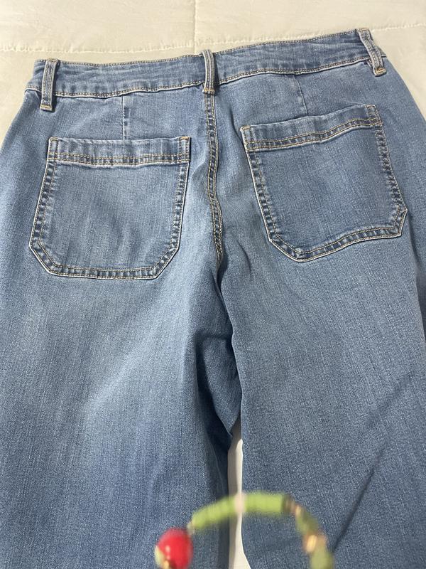 Web ID: 24366402Style & Co combines barrel jeans with a pair of utility-pockets. The cropped hem and tapered wide-leg silhouette make them look fresh and modern.