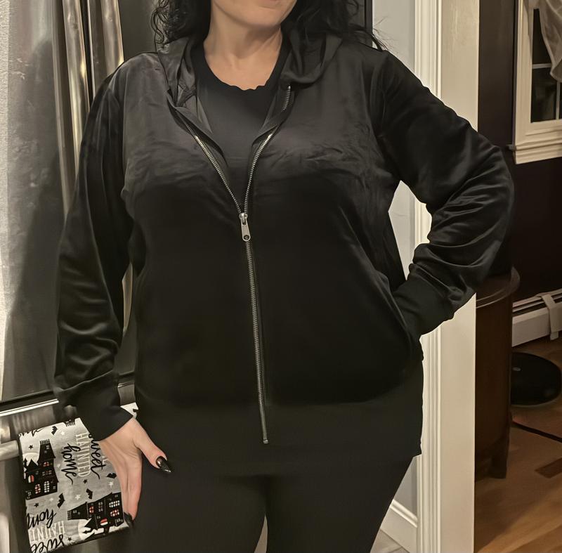 Lovely Fabric and nice weight velour. Fit is nice as well!