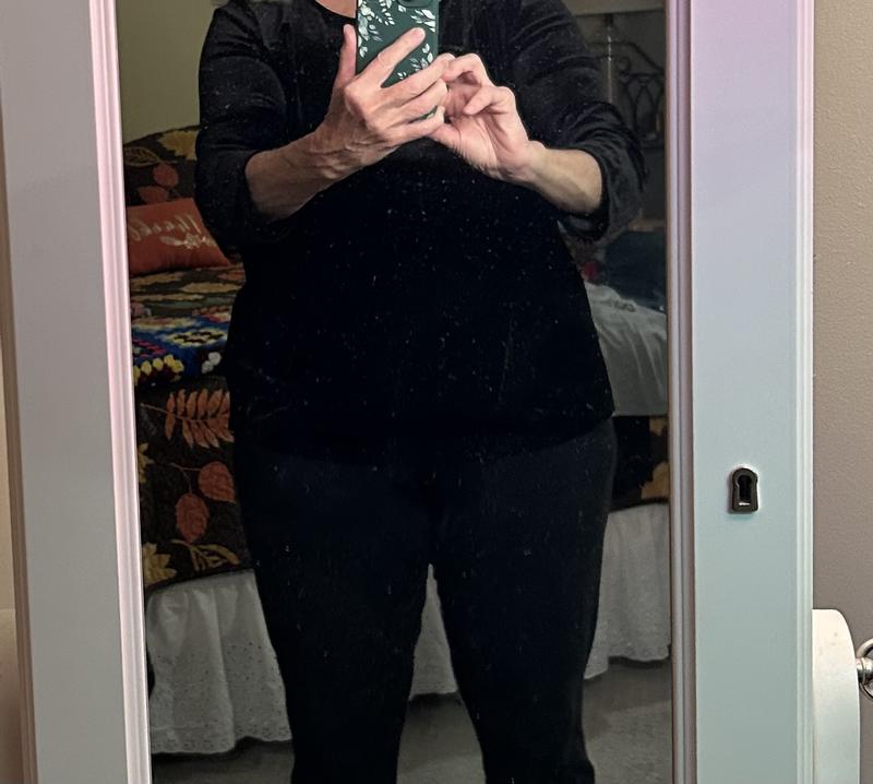 The velvet top is soft comfortable and flowy without clinging to the body. Pair this with a pair of velvet pants or skirt , dress slacks. Add some accessories and you’re ready for a night out or work.