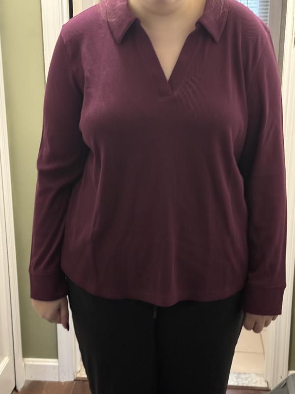 Women's Waffle-Knit Long-Sleeve Polo Top, Macy's Exclusive
