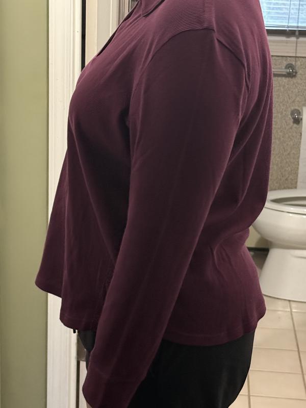 Nice casual top. Bought it to wear with a black sweater skirt and this black isn’t Deep black so it doesn’t work for that. But it’s great for jeans.