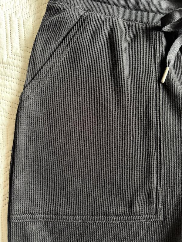 I had hoped these pants would be a little thicker and fine for wearing outside the house, especially for traveling through airport use. However, They really look like pajama pants. They are also too short for me (at 6 ft tall) but would probably be fine for someone who is more average sized.
