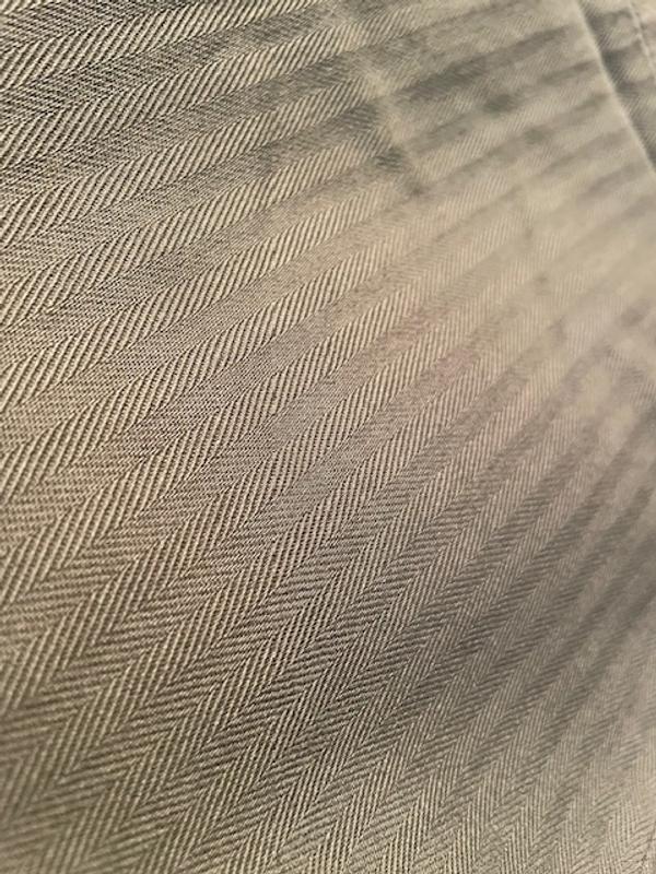 Nice lightweight pant. These would be perfect for spring or a cool summer night. The color is very trendy and the subtle herringbone design dresses them up. They do run a little large but belt loops will help with the fit. The elastic in the back provides for a comfortable fit.