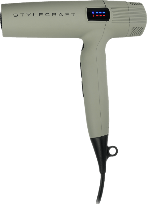 A lightweight hair dryer with 2 concentrator nozzles and 1 diffuser