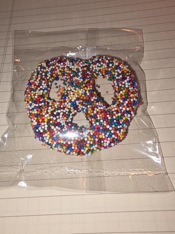 I really enjoyed the plain chocolate covered pretzels. Its the sprinkles & chocolate chip covered ones that were just too much sugar & they (sprinkles) made the chocolate too hard to eat. Aside from me ordering them way before Christmas 🎄 I finally got them, just shy of the New Year! I wouldn't buy these again due to the long delay & absolutely no one helping me within customer service. They kept saying "We can't cancel the order you must wait to receive the package & then return it." What they seem to forget is that this is "Food" & can't be returned. Not Macy's fault but the company who shipped them. Hard candy for folks who have trouble eating sprinkles...elderly folks? Doesnt work!