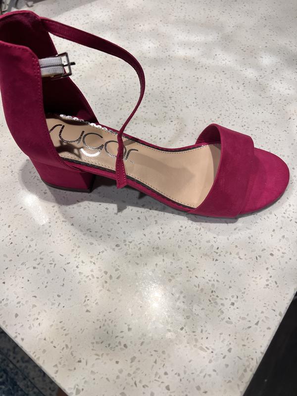 This dressy block heel sandal has open toe, ankle strap buckle closure. It can be dressed up or casual to wear with shorts, jeans or a skirt.