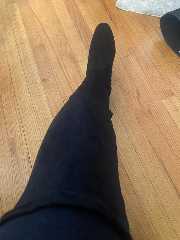 Review for Olive-Sugar. When they were making these boots they should have stopped at the ankle, they would have been beautiful ankle boots. From the ankle up the material feels like they taped two plastic bags together. They will fall down if you have small calves. I can't believe these great reviews. Cheap material.